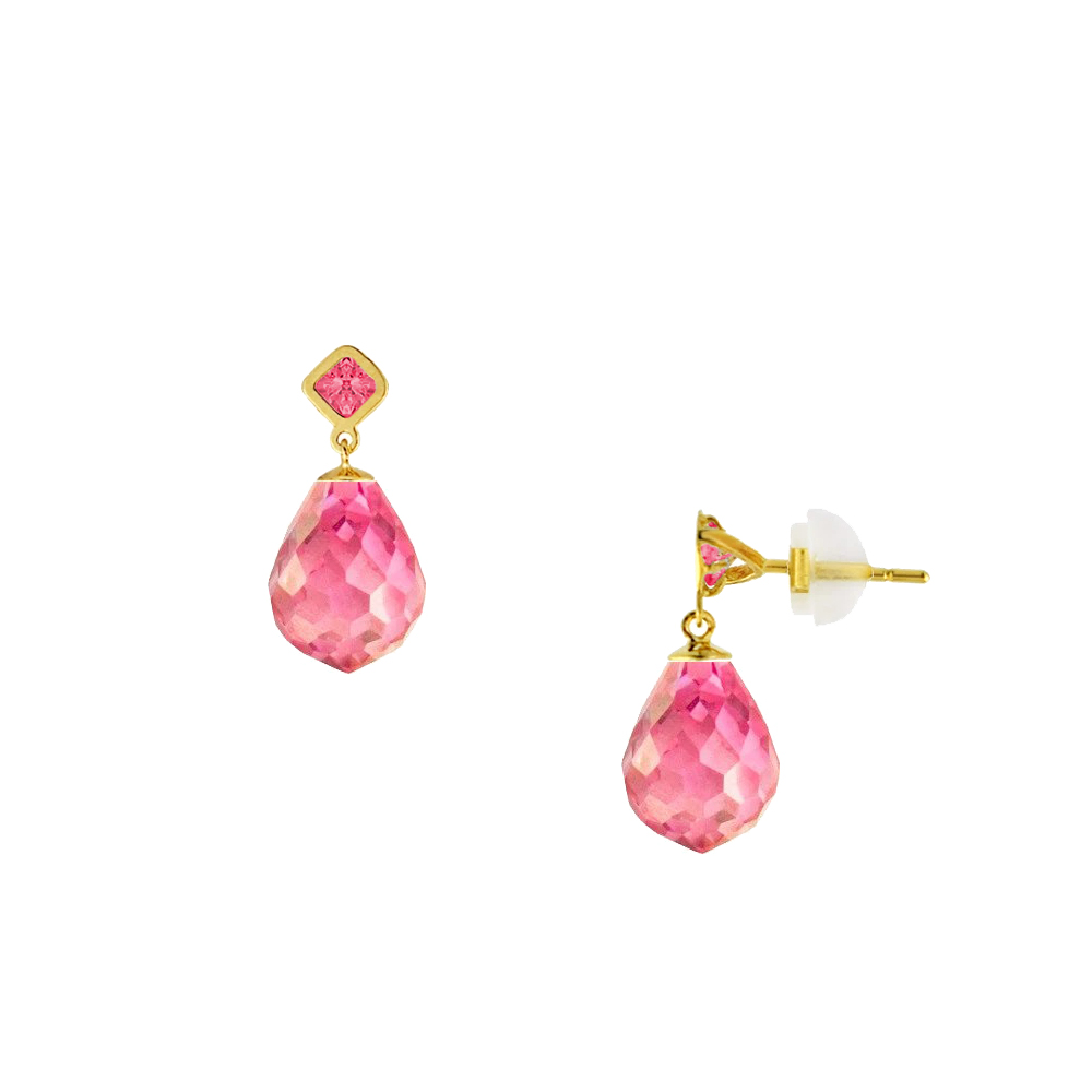 • Ένα φανταστικό ζευγάρι σκουλαρίκια με ημιπολύτιμους λίθους Pink Quartz Cubic Zircon Facet σε σχήμα Drop (σταγόνα), διαμέτρου 7 x 10 χιλιοστών.
