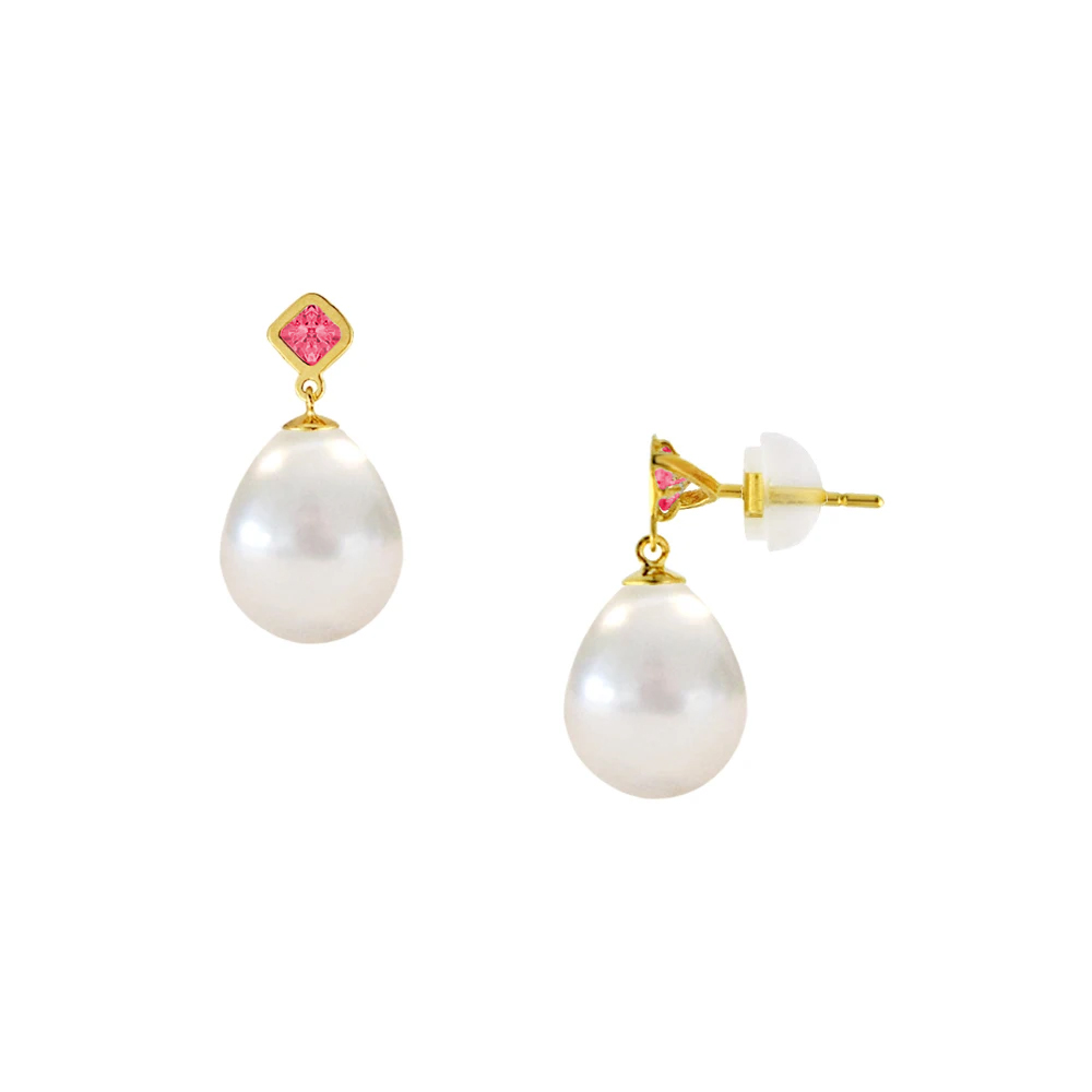 • Ένα φανταστικό ζευγάρι σκουλαρίκια με 2 εντυπωσιακά λευκά μαργαριτάρια Fresh Water Pearl σε σχήμα Drop (σταγόνα), διαμέτρου 8,5 x 11 χιλιοστών.