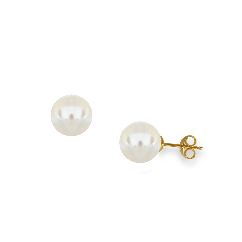 • Ένα υπέροχο ζευγάρι σκουλαρίκια με ολοστρόγγυλα λευκά Shell Pearl διαμέτρου 8,0 χιλιοστών.