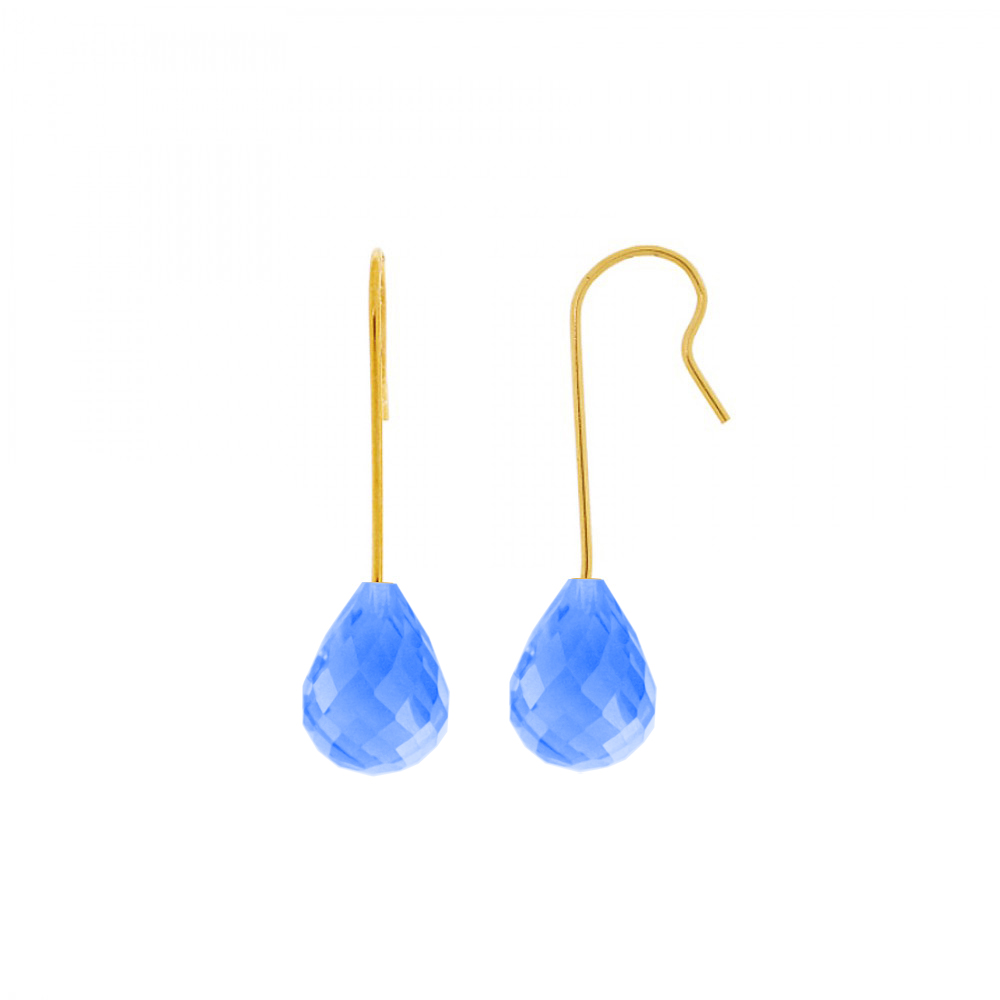 • Ένα υπέροχο ζευγάρι κρεμαστά σκουλαρίκια με ημιπολύτιμο φασεταρισμένο λίθο Aqua ή Blue Topaz Cubic Zircon διαμέτρου 7x10 χιλιοστών.