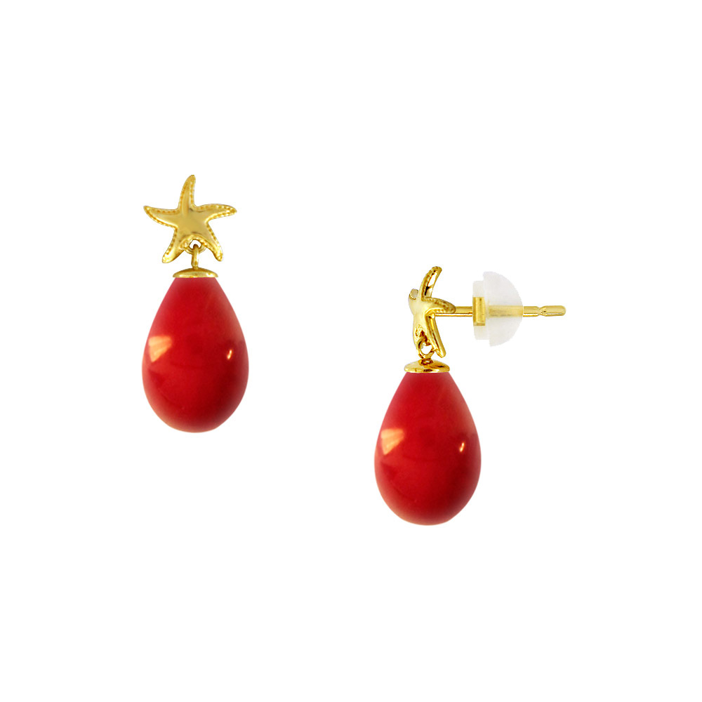 Σκουλαρίκια σε Κ14 χρυσή βάση και κοράλλι - L123301