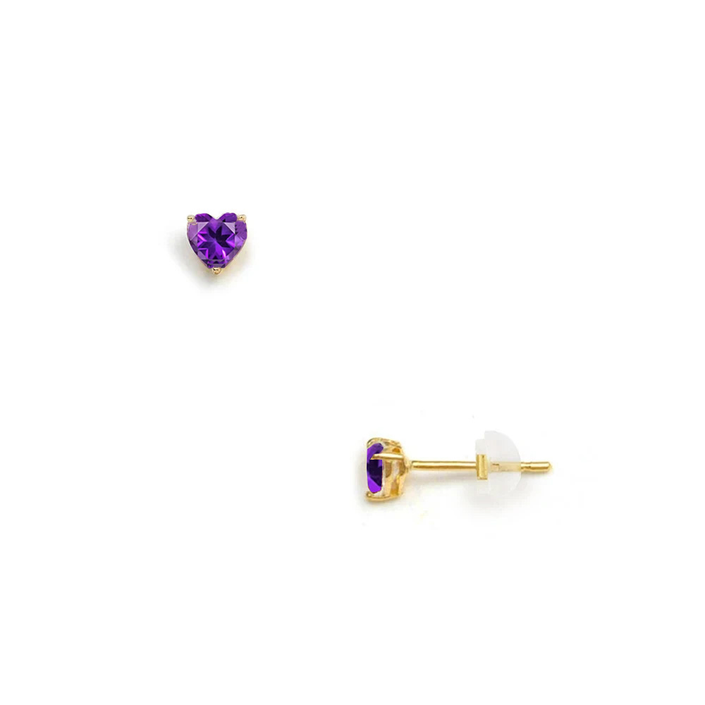 • Ένα εντυπωσιακό μονόπετρο ζευγάρι σκουλαρίκια με ημιπολύτιμο λίθο αμέθυστου διαμέτρου περίπου 3,5 χιλιοστών, σε σχήμα καρδιά.