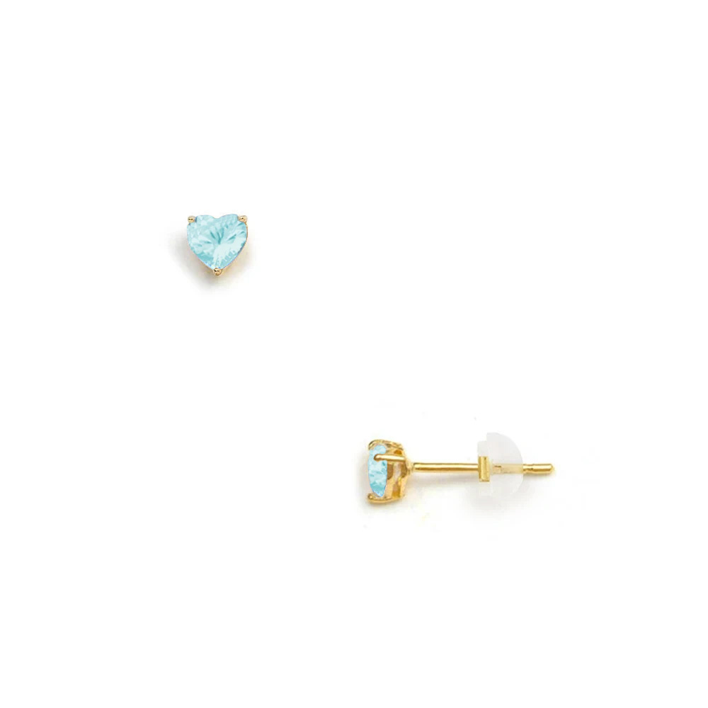 Σκουλαρίκια Κ14 χρυσά με aqua σε σχήμα καρδιά - F125846AQ