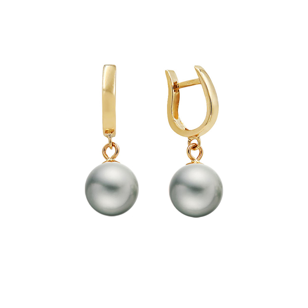• Ένα υπέροχο ζευγάρι κρεμαστά σκουλαρίκια με γκρι μαργαριτάρια QTV Akoya διαμέτρου 7,5-8 χιλιοστών, σε σχήμα Round