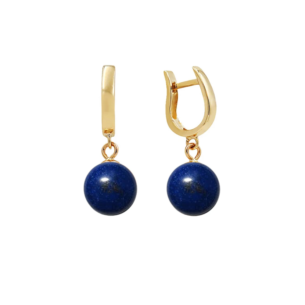 • Ένα υπέροχο ζευγάρι κρεμαστά σκουλαρίκια με ημιπολύτιμους λίθους Lapis χιλιοστών, σε σχήμα Round