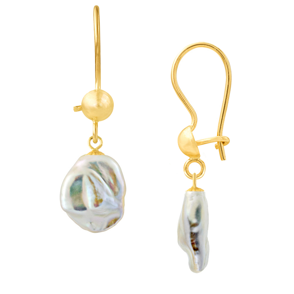 • Ένα υπέροχο ζευγάρι κρεμαστά σκουλαρίκια με λευκά μαργαριτάρια Biwa Fresh Water Pearl διαμέτρου 12,5x14 χιλιοστών σε σχήμα Baroque.