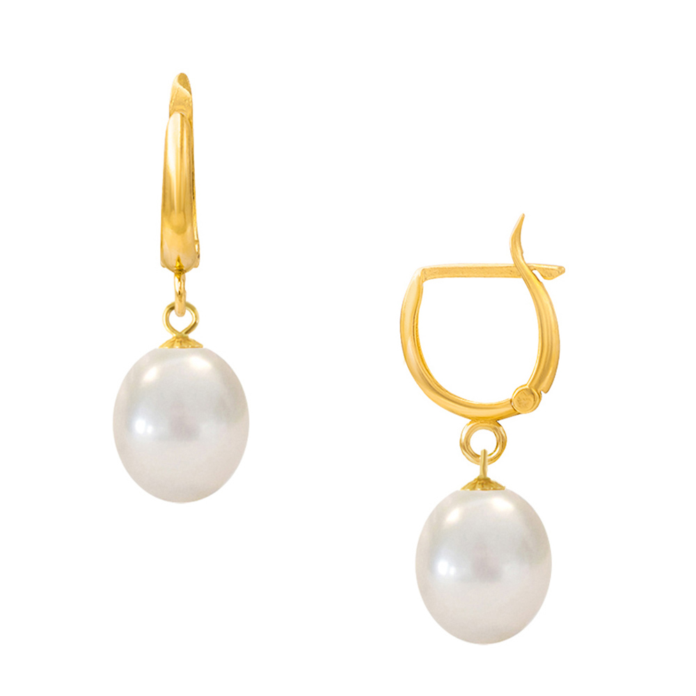 Σκουλαρίκια Κ14 χρυσά με λευκά μαργαριτάρια - F124546L