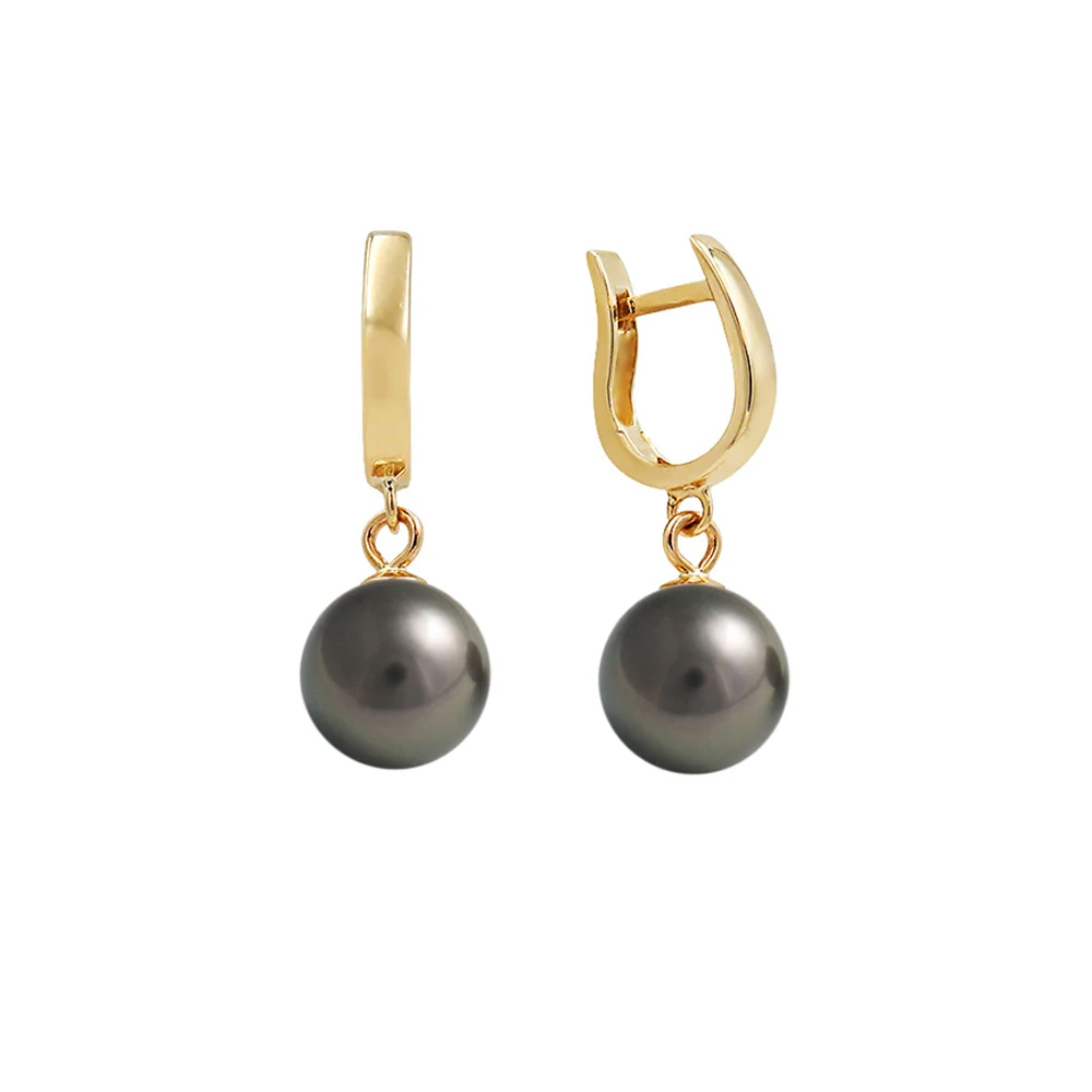• Ένα υπέροχο ζευγάρι κρεμαστά σκουλαρίκια με μαύρα μαργαριτάρια QTV Akoya διαμέτρου 7,5-8 χιλιοστών, σε σχήμα Round