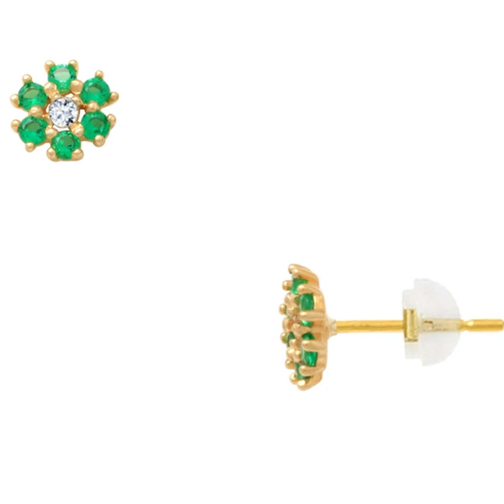 Σκουλαρίκια Κ14 χρυσά με σμαράγδια και ζιργκόν - F125848E