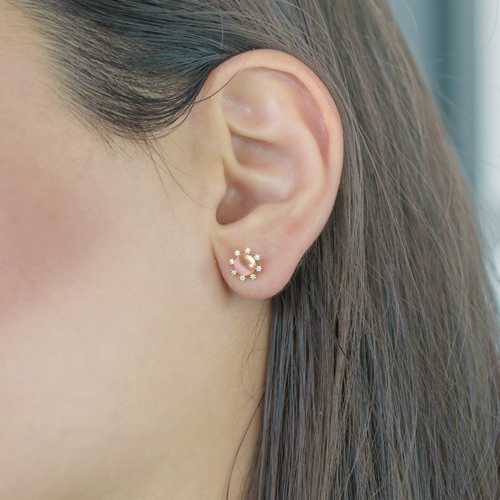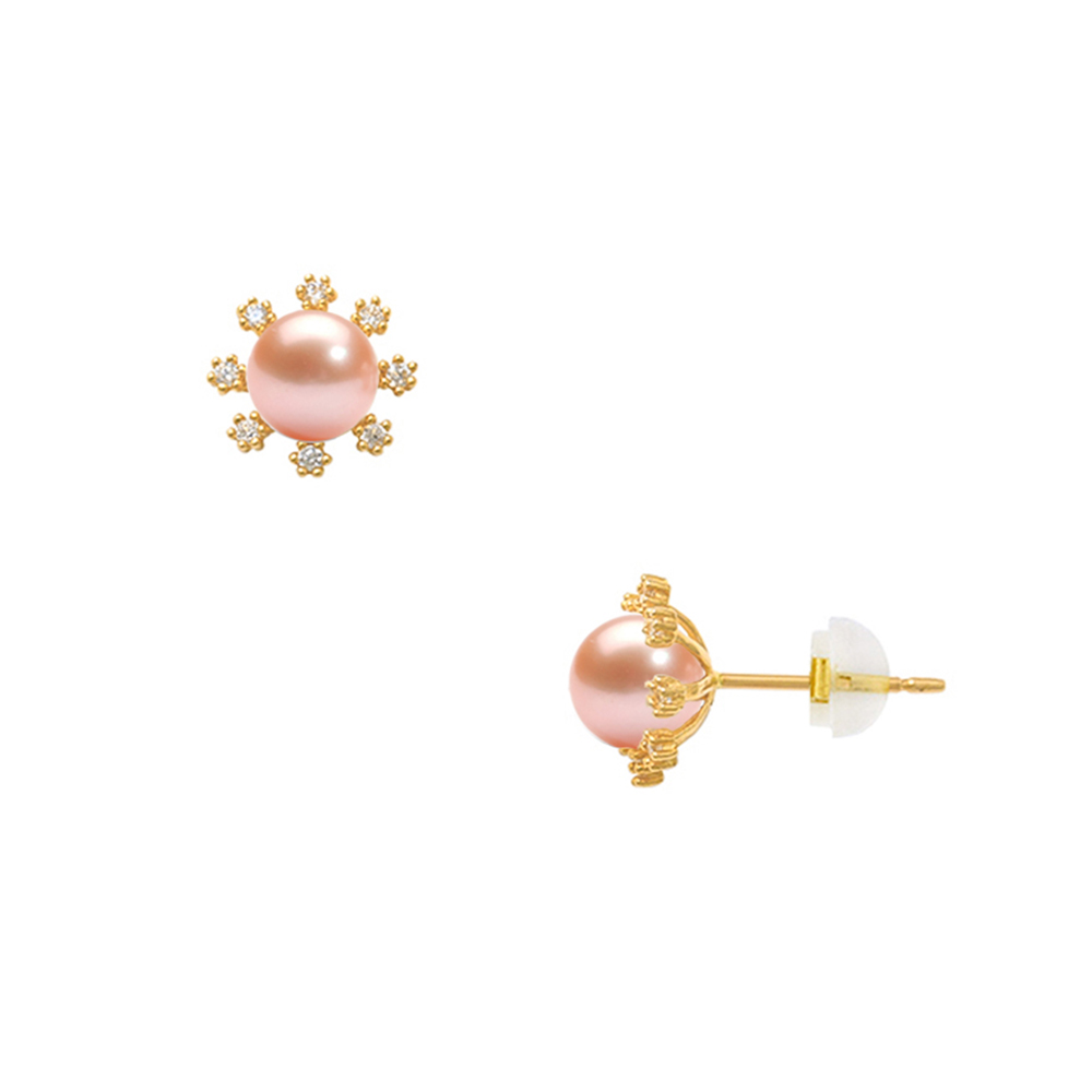 Σκουλαρίκια Κ14 χρυσά με σομόν μαργαριτάρια Q.T.V. Akoya και ζιργκόν - F124527S
