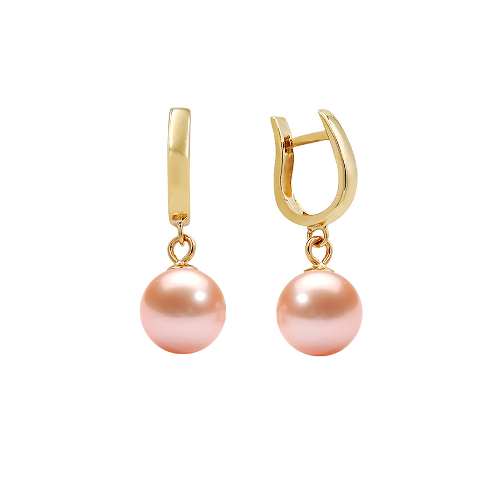 • Ένα υπέροχο ζευγάρι κρεμαστά σκουλαρίκια με somon μαργαριτάρια QTV Akoya διαμέτρου 7,5-8 χιλιοστών, σε σχήμα Round