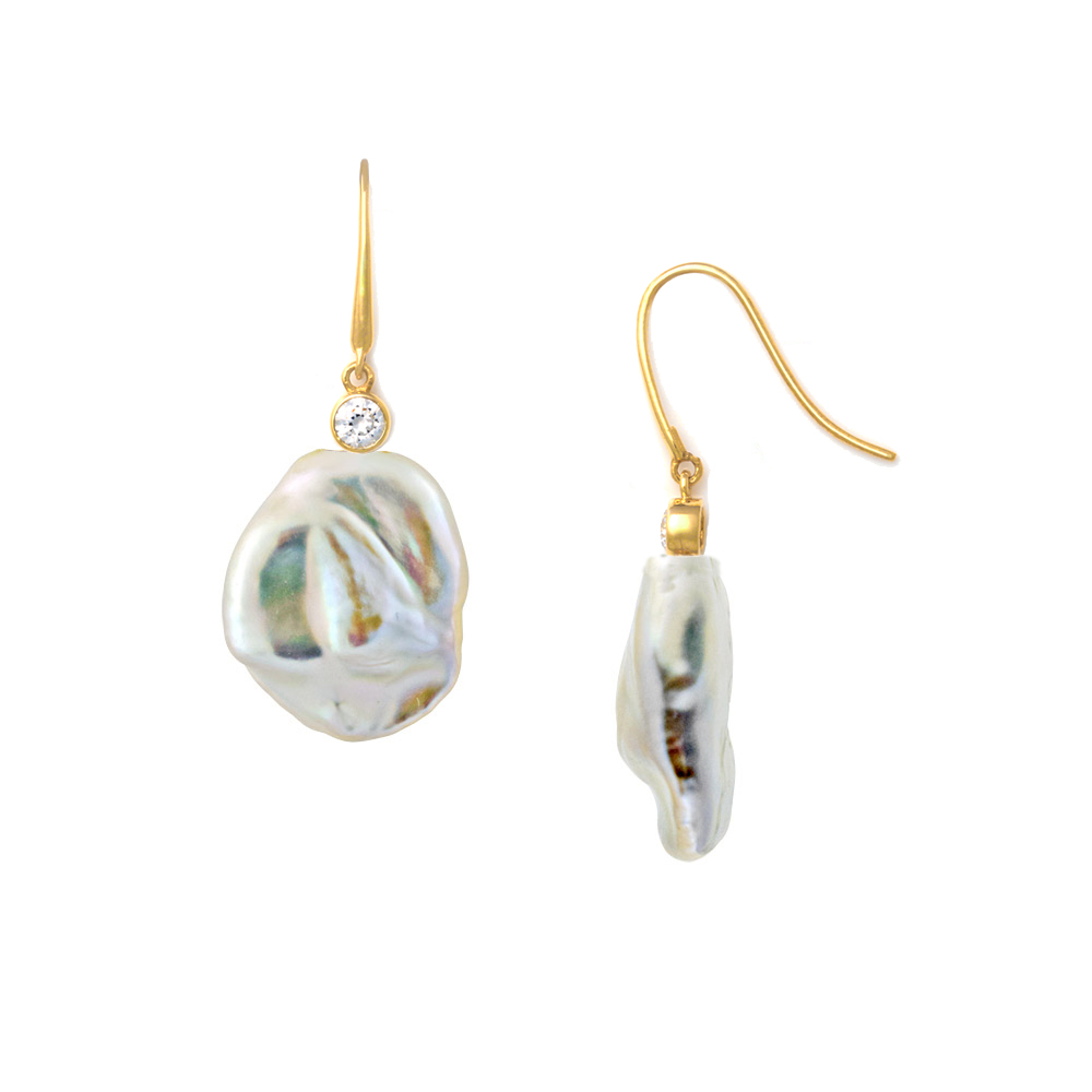 • Ένα υπέροχο ζευγάρι κρεμαστά σκουλαρίκια με λευκά μαργαριτάρια Biwa Fresh Water Pearl διαμέτρου 12,5x14 χιλιοστών σε σχήμα Baroque.