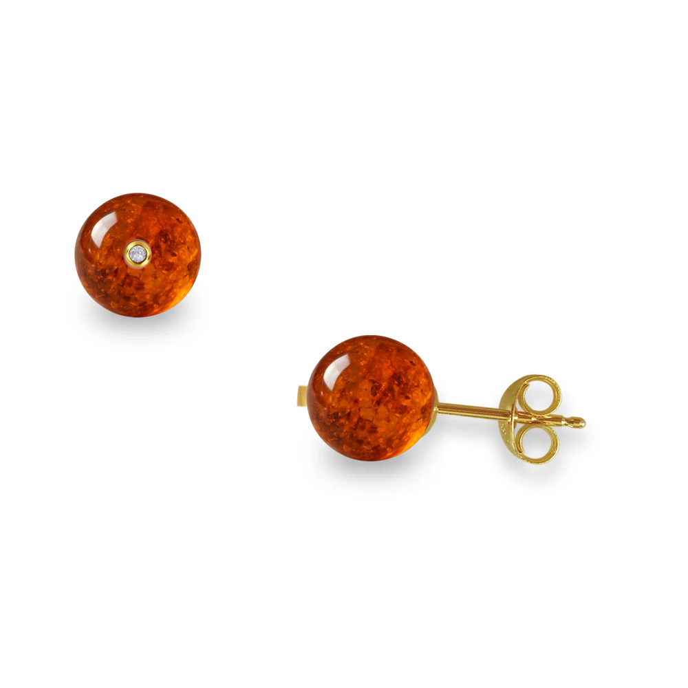 • Ένα υπέροχο ζευγάρι σκουλαρίκια με ημιπολύτιμο λίθο κεχριμπάρι διαμέτρου 8 χιλιοστών.