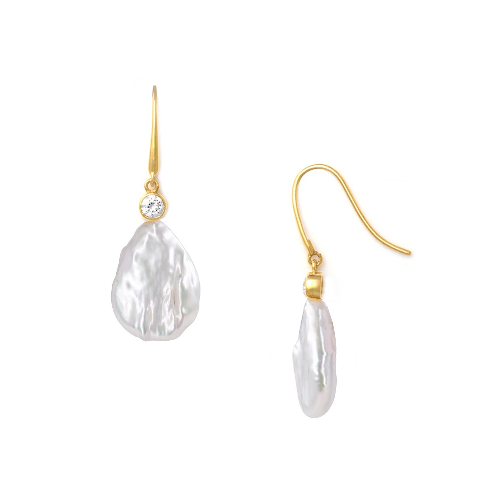 Σκουλαρίκια Κ14 χρυσά με Biwa μαργαριτάρια και ζιργκόν - S124526B