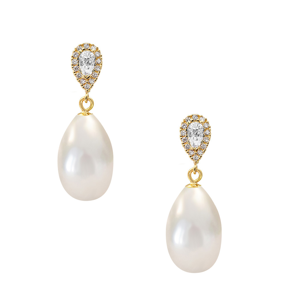 Ένα ζευγάρι σκουλαρίκια που θα λατρέψετε να φοράτε και εντυπωσιάζεο λόγω της λάμψης του χρυσού και των ζιργκόν και λόγω του μεγέθους των μαργαριταριών.