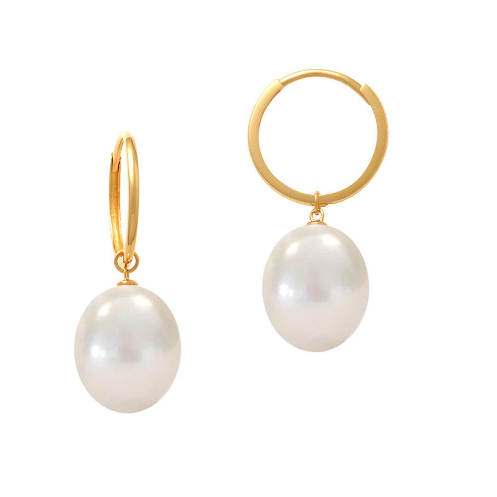 Σκουλαρίκια- κρίκοι σε Κ14 χρυσό με λευκά μαργαριτάρια - F125295
