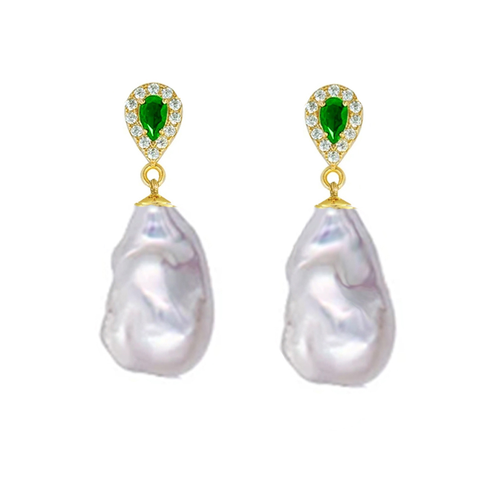 Σκουλαρίκια Κ14 χρυσά με μαργαριτάρι baroque και ζιργκόν - F125193G