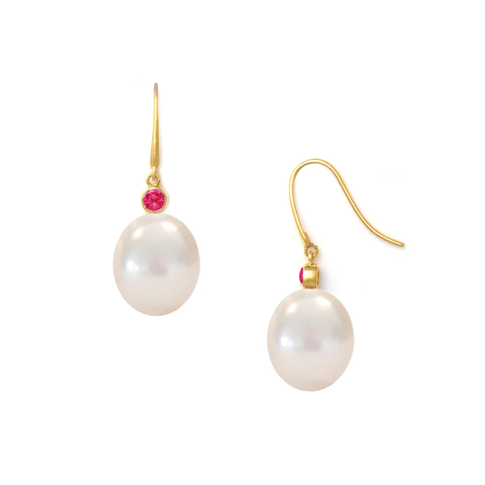 Ένα εντυπωσιακό ζευγάρι κρεμαστά σκουλαρίκια που συνδυάζουν την πολυτέλεια του Pink Quartz με την κλασσική ομορφιά των μαργαριταριών.