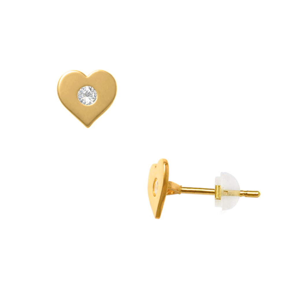 Σκουλαρίκια χρυσά Κ14 με ζιργκόν σε σχήμα καρδιά - F124520