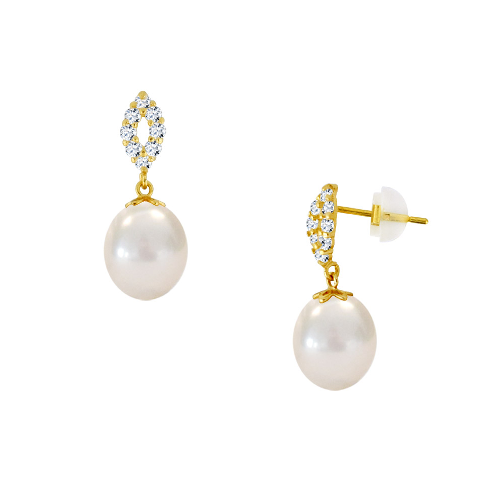 Σκουλαρίκια σε Κ14 χρυσή βάση με μαργαριτάρια και ζιργκόν - L123444