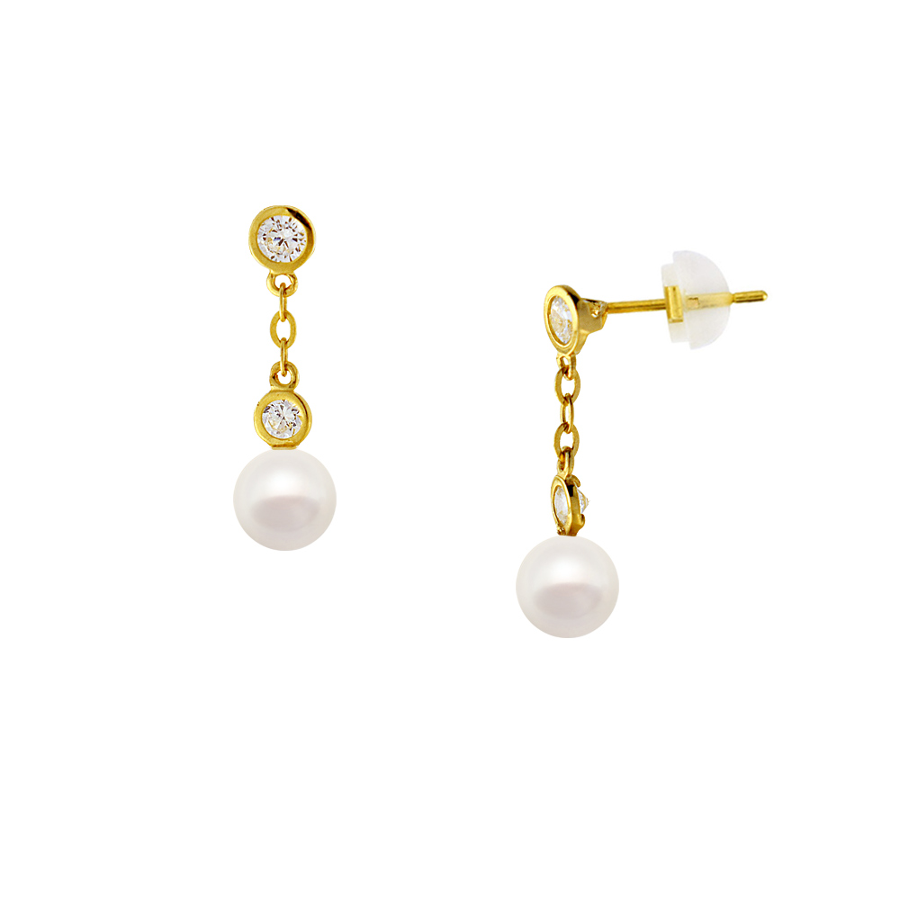 Σκουλαρίκια σε Κ14 χρυσή βάση με λευκά μαργαριτάρια και ζιργκόν - M123824