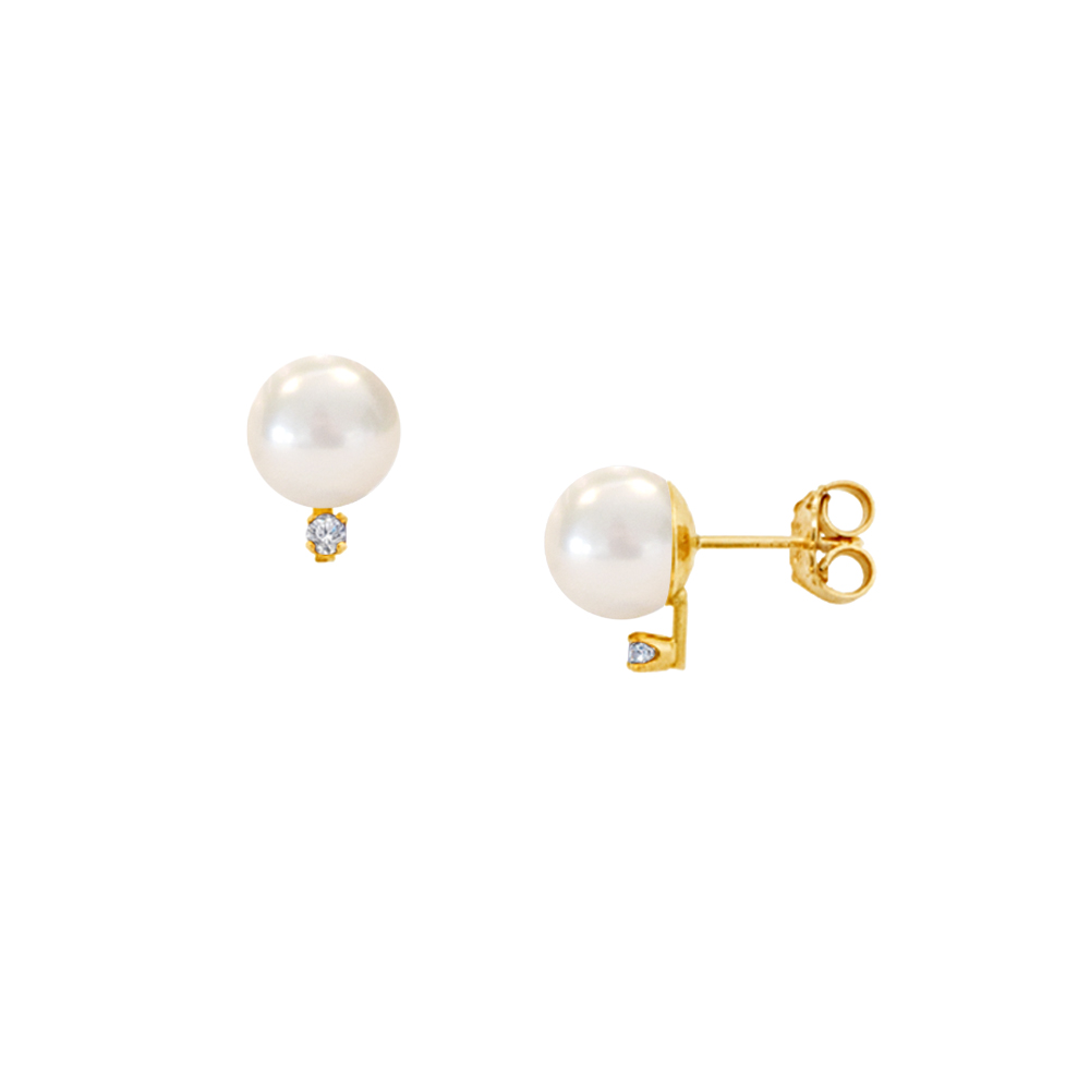 Σκουλαρίκια σε Κ14 χρυσή βάση με λευκά μαργαριτάρια και διαμάντια - G121360