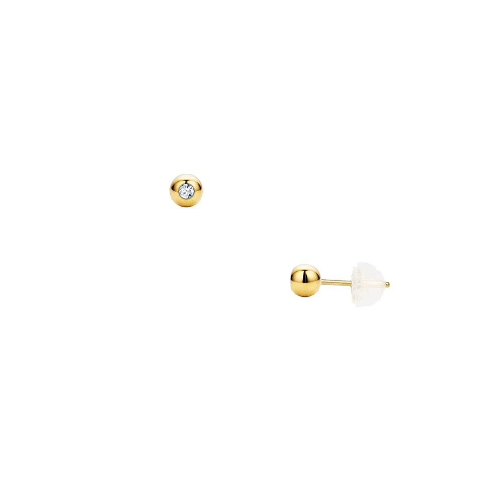Διαθέτει 2 διαμάντια 0,02 καρατίων, καθαρότητας VS1 και κοψίματος Μπριγιάν τοποθετημένα σε χρυσή μπίλια διαμέτρου 3 χιλιοστών.