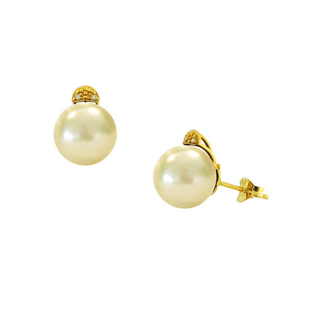 Σκουλαρίκια με gold South Sea μαργαριτάρια σε χρυσή βάση Κ18 και διαμάντια  - G122766