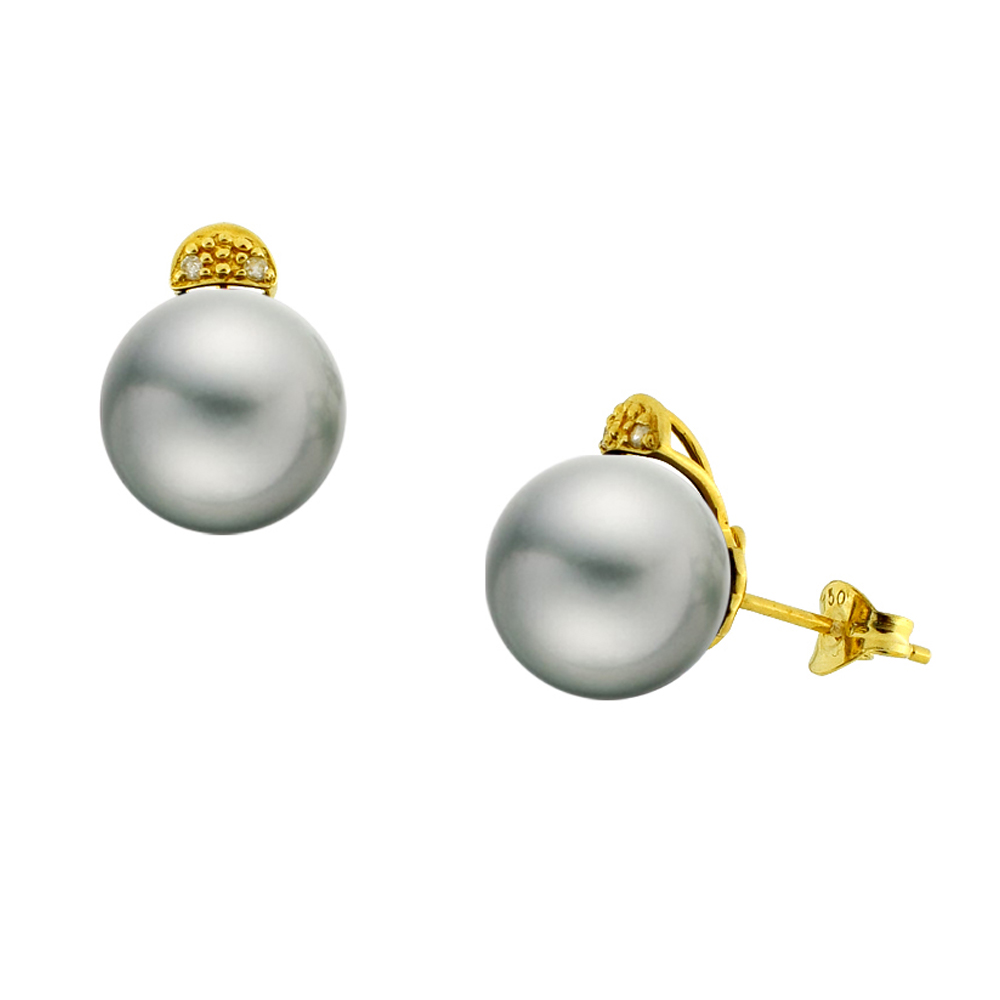 Σκουλαρίκια Κ18 ΄χρυσά με γκρι μαργαριτάρια και διαμάντια - G122737G