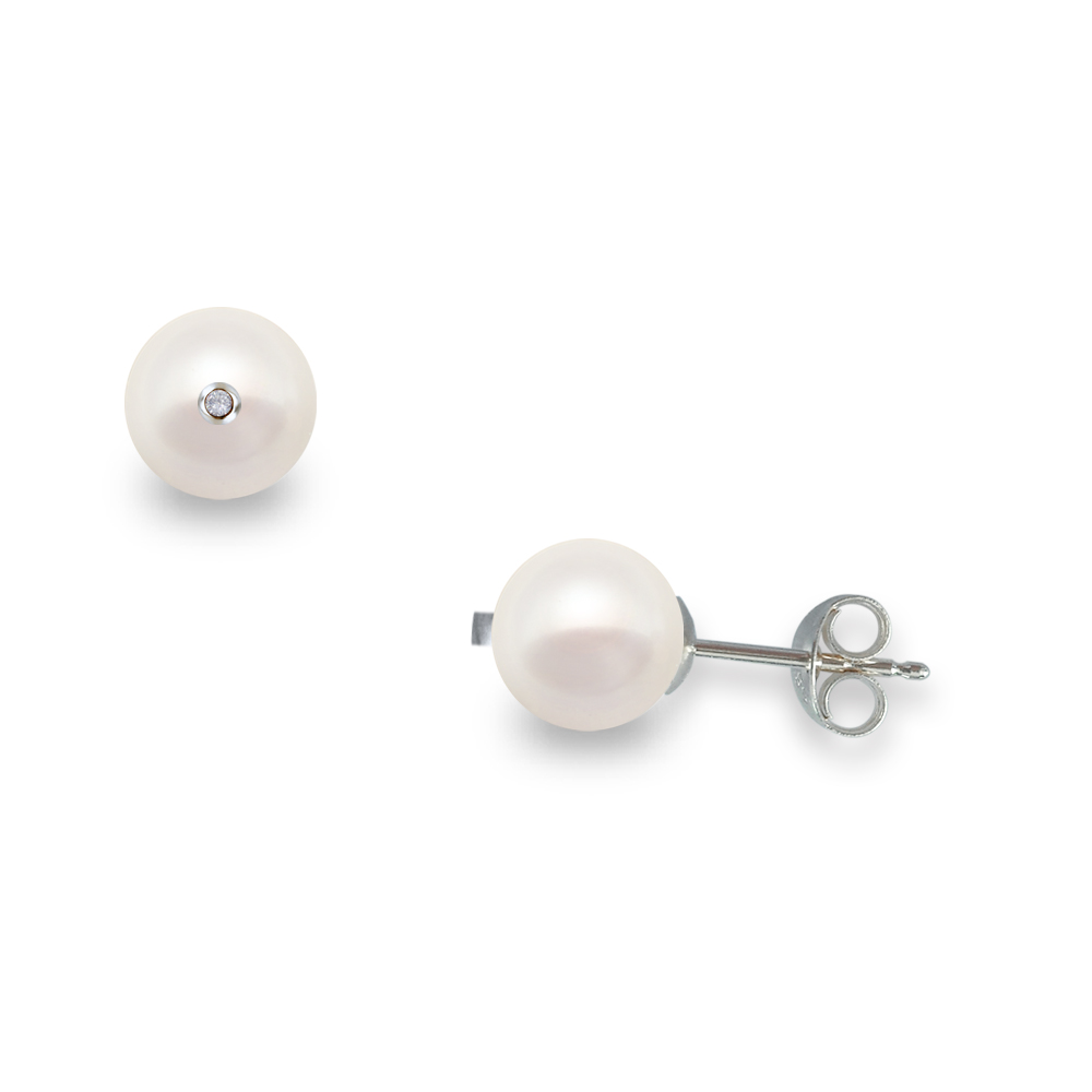Σκουλαρίκια με λευκά μαργαριτάρια σε χρυσή βάση Κ14 και διαμάντια - G317599