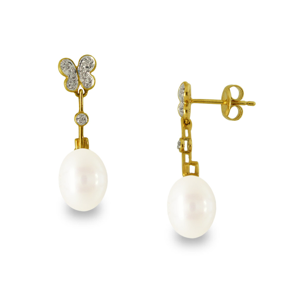 Σκουλαρίκια με λευκά μαργαριτάρια και διαμάντια σε χρυσή βάση Κ18 - G318435L
