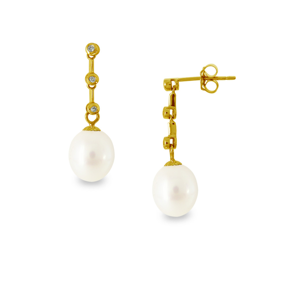 Σκουλαρίκια με μαργαριτάρια και διαμάντια σε χρυσή βάση Κ18 - G318817