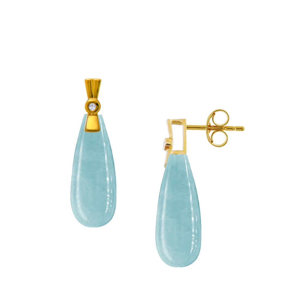 Ένα μοντέρνο ζευγάρι σκουλαρίκια που συνδυάζει τη λάμψη του χρυσού με το γλυκό χρώμα της aqua.