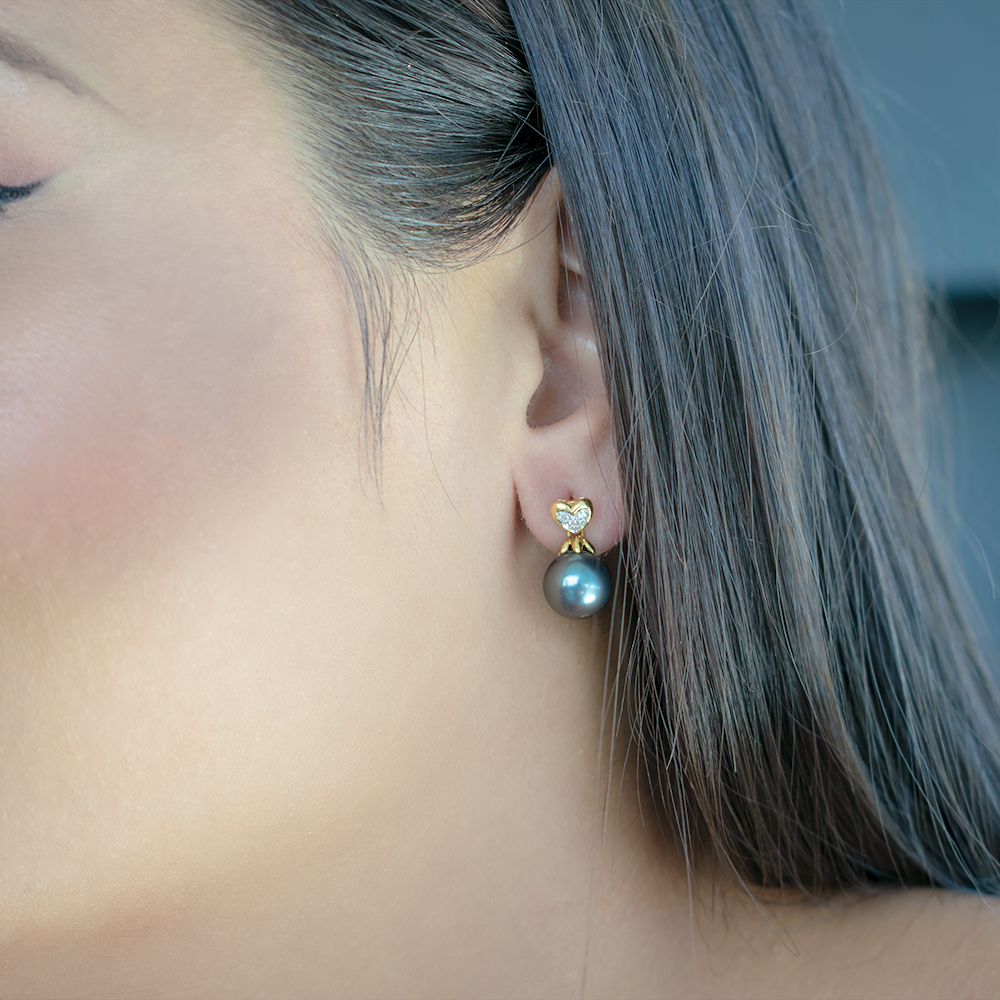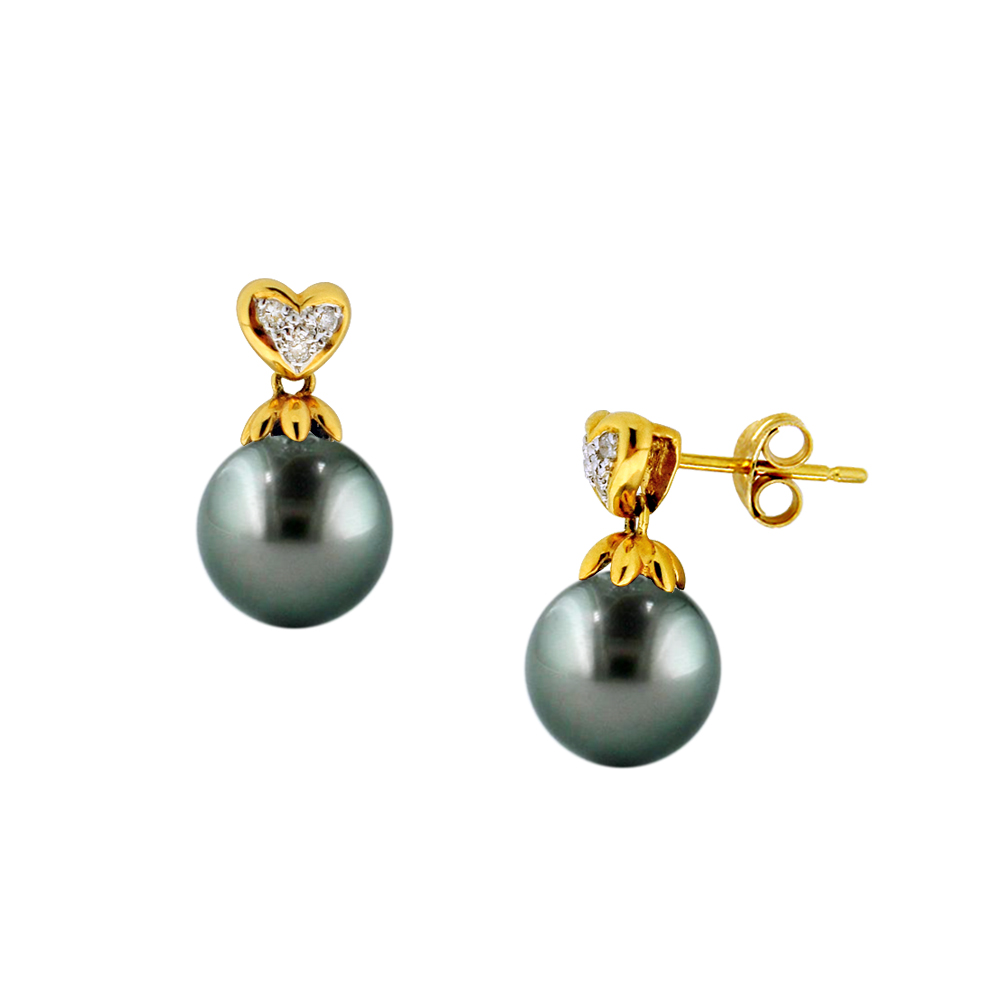 Σκουλαρίκια με Black South Sea μαργαριτάρια σε χρυσή βάση Κ18 με διαμάντια - M300192