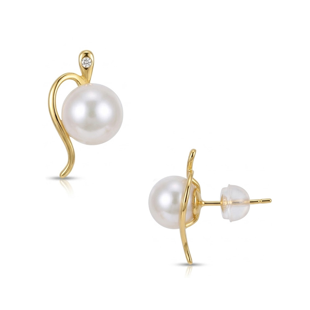 Σκουλαρίκια Κ18 χρυσά με λευκά μαργαριτάρια και δοαμάντια - F1252330
