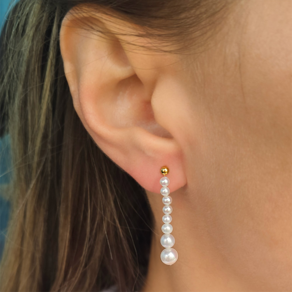Ένα ιδιαίτερο ζευγάρι σκουλαρίκια κλασικά και διαχρονικά που συνδυάζουν αρμονικά το λευκό χρώμα των μαργαριταριών με την αξεπέραστη λάμψη του χρυσού.