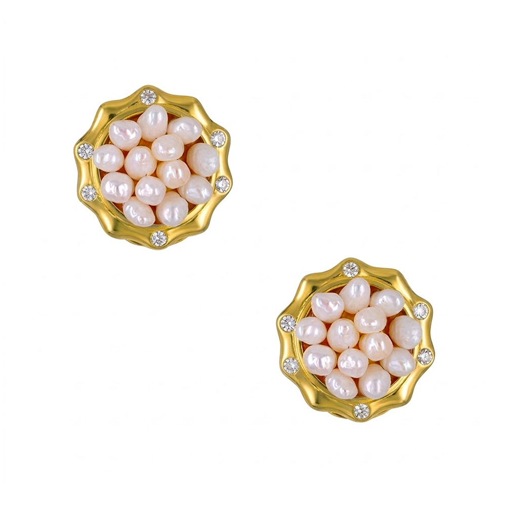 • Ένα υπέροχο ζευγάρι χειροποίητα σκουλαρίκια με 26 λευκά μαργαριτάρια Fresh Water Pearl διαμέτρου 3x4 χιλιοστών, με ιδιαίτερους φυσικούς ιριδισμούς.