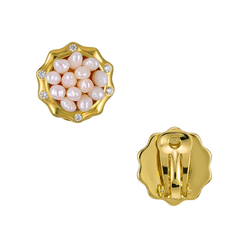 Σκουλαρίκια με λευκά μαργαριτάρια και βάση από ατσάλι με κλιπ - F1252313