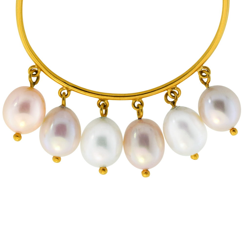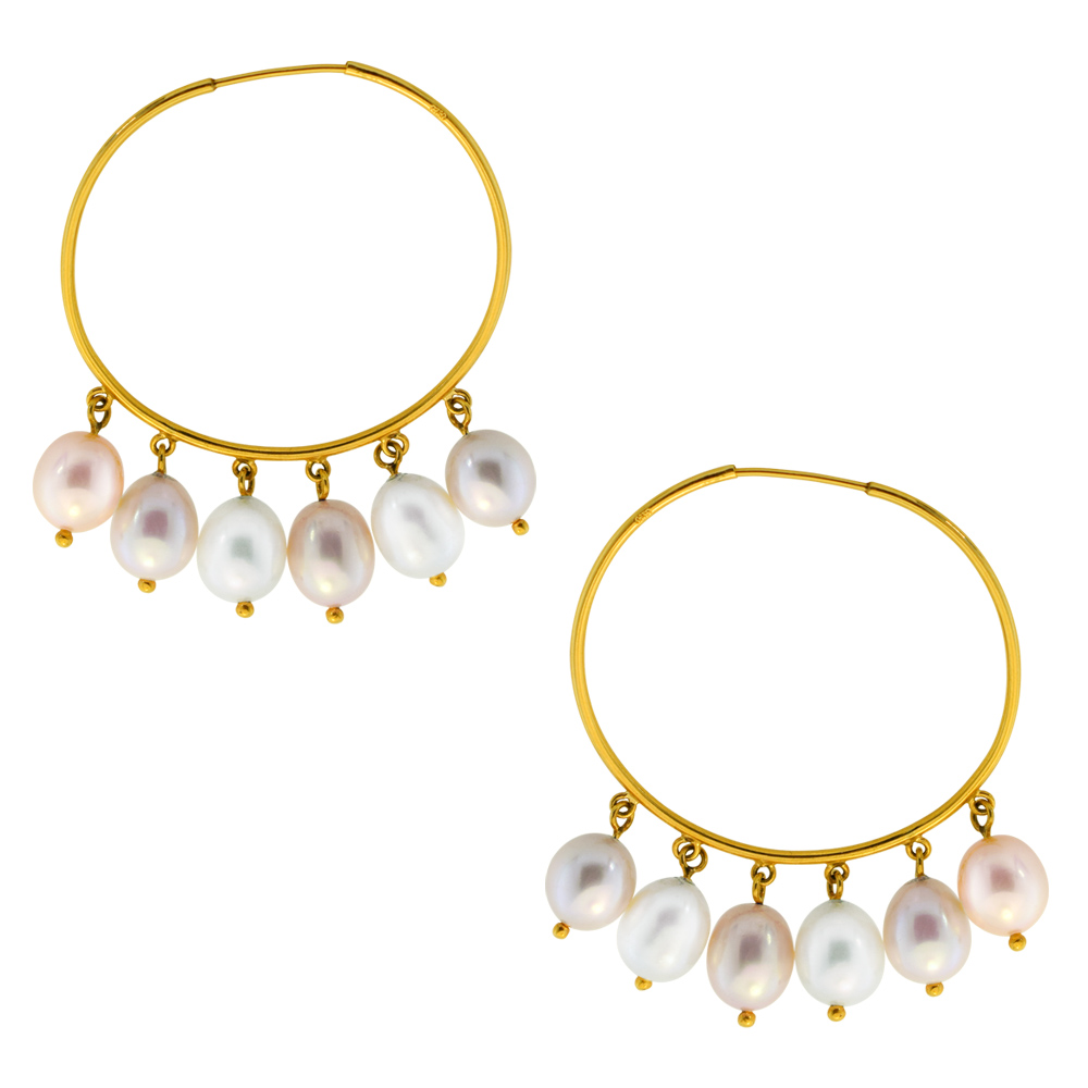 • Ένα υπέροχο ζευγάρι σκουλαρίκια κρίκοι με 12 πολύχρωμα μαργαριτάρια γλυκού νερού Fresh Water Pearl, άριστης ποιότητας σε σχήμα Drop (σταγόνα), διαμέτρου 7,5x9 χιλιοστών.