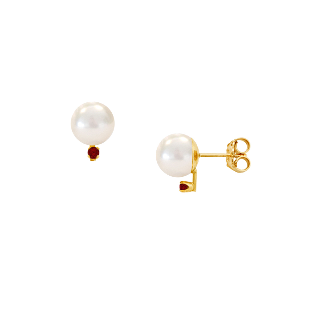Σκουλαρίκια σε Κ14 χρυσή βάση με λευκά μαργαριτάρια και ρουμπίνια - G121360R