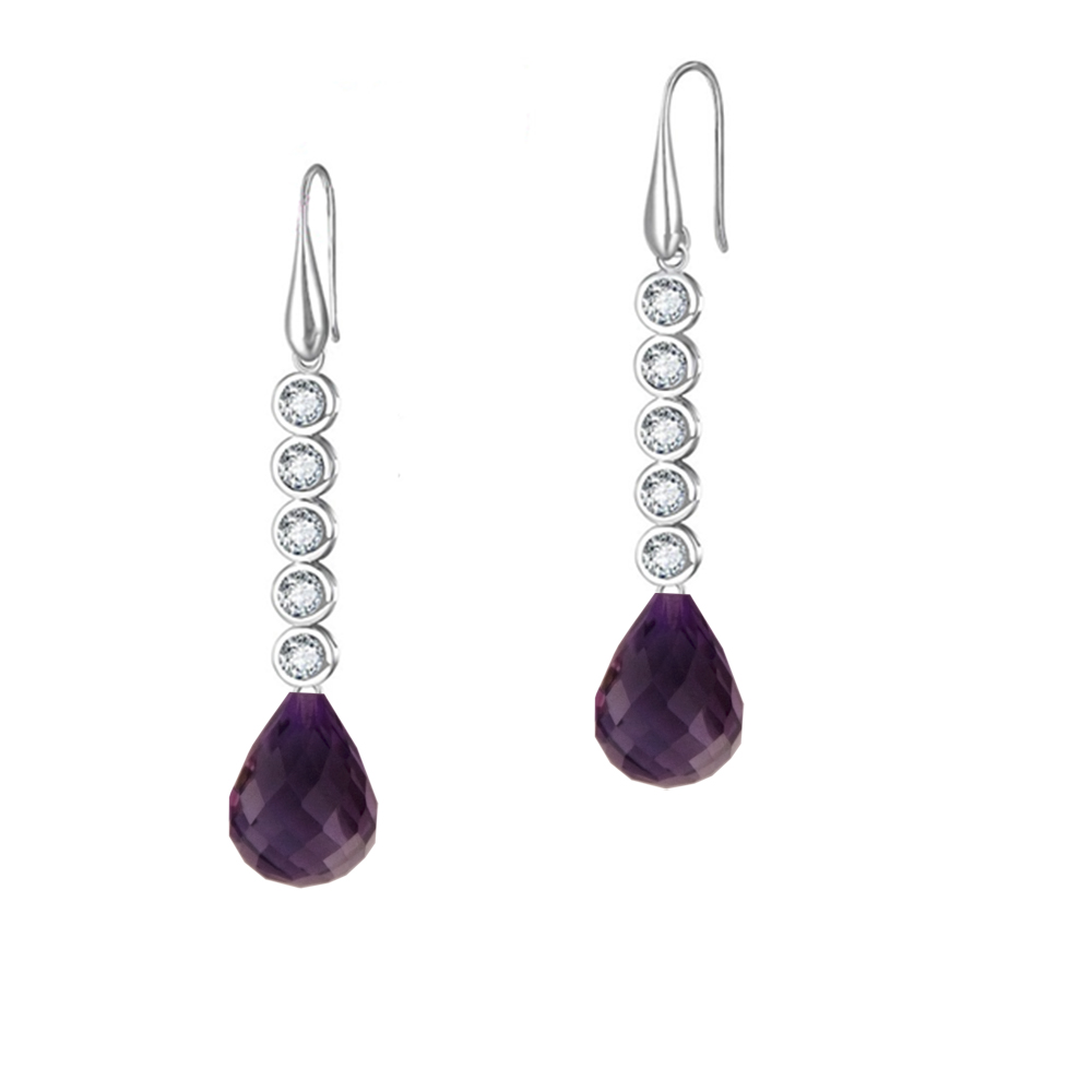 • Ένα υπέροχο ζευγάρι κρεμαστά σκουλαρίκια με ημιπολύτιμο φασεταρισμένο λίθο Αμέθυστο Zircon διαστάσεων 7 x 10 σε σχήμα Long.