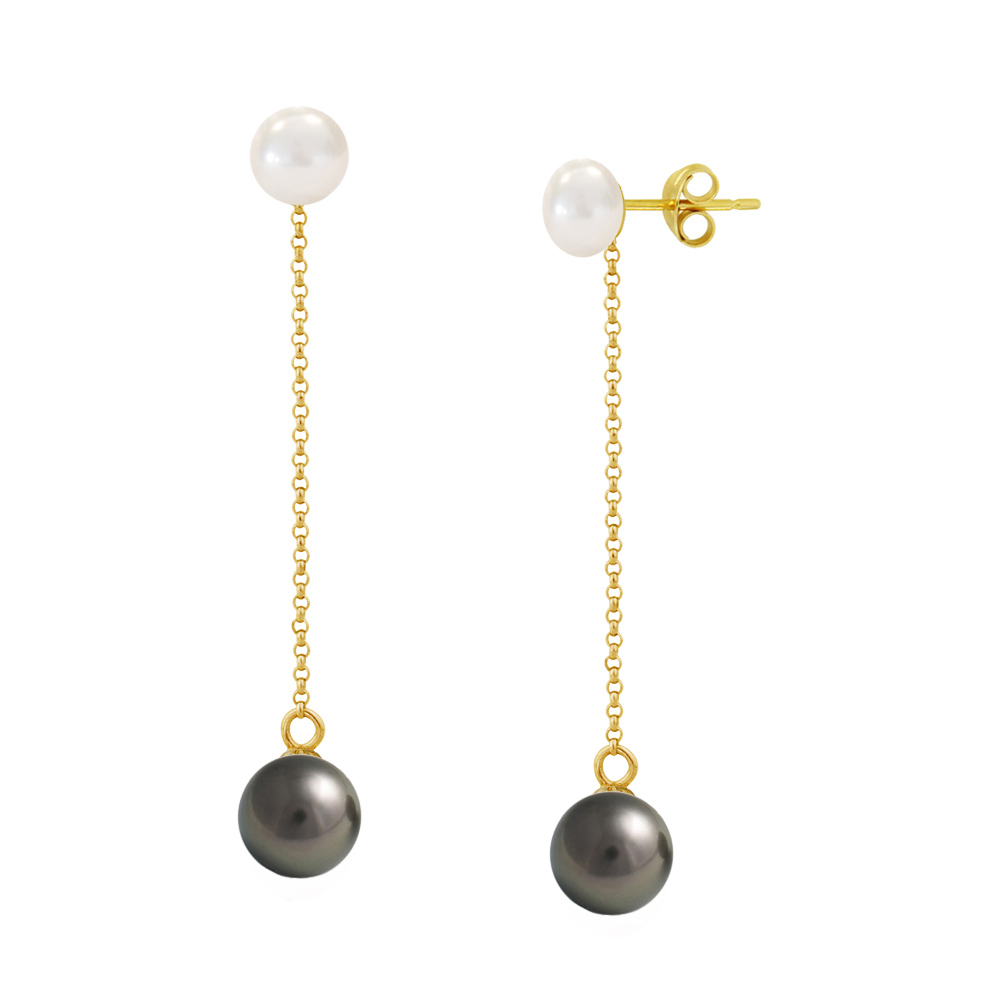 Σκουλαρίκια Κ14 χρυσά με άσπρα και μαύρα μαργαριτάρια - M123058B