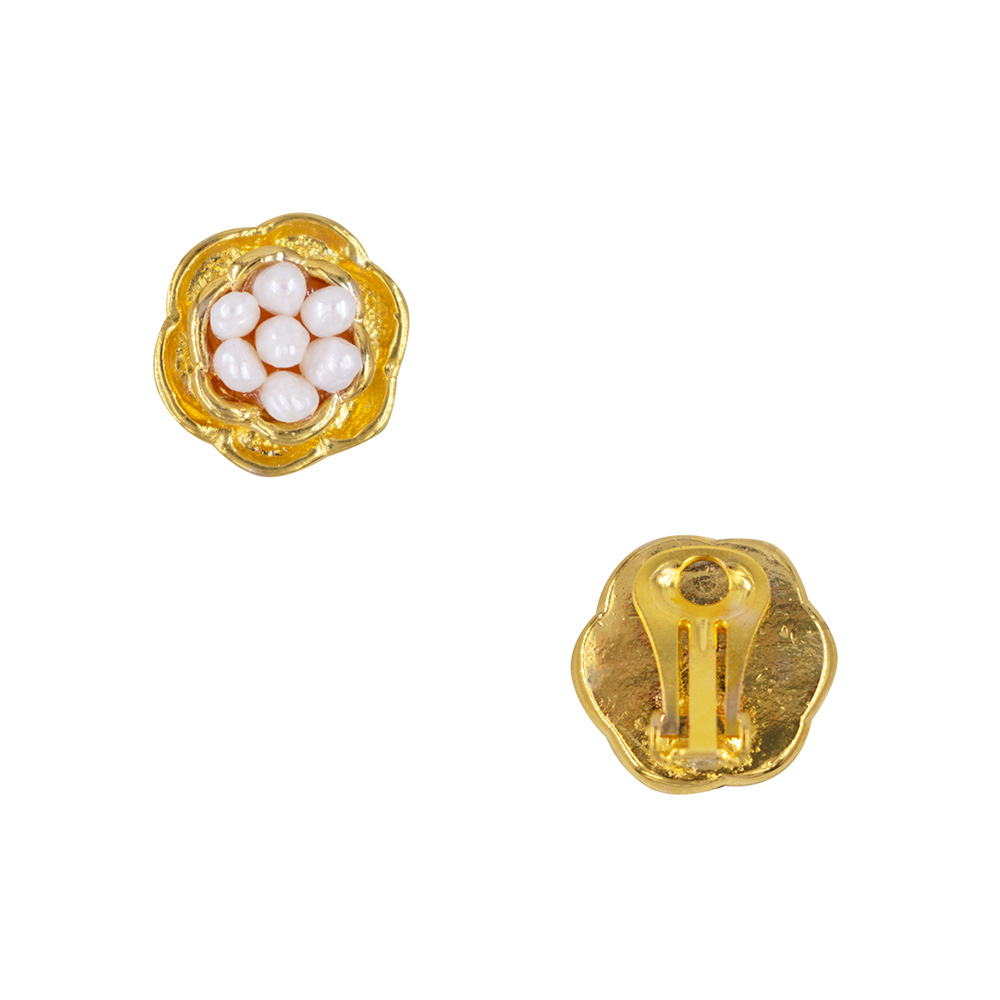 Σκουλαρίκια με λευκά μαργαριτάρια και βάση από ατσάλι με κλιπ - F126877