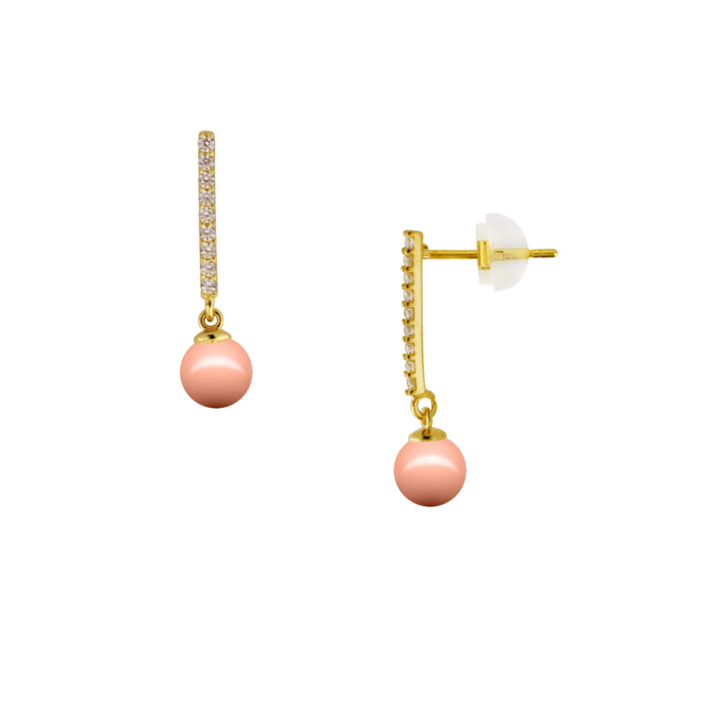 Σκουλαρίκια σε Κ14 χρυσή βάση και κοράλλια - M123823C