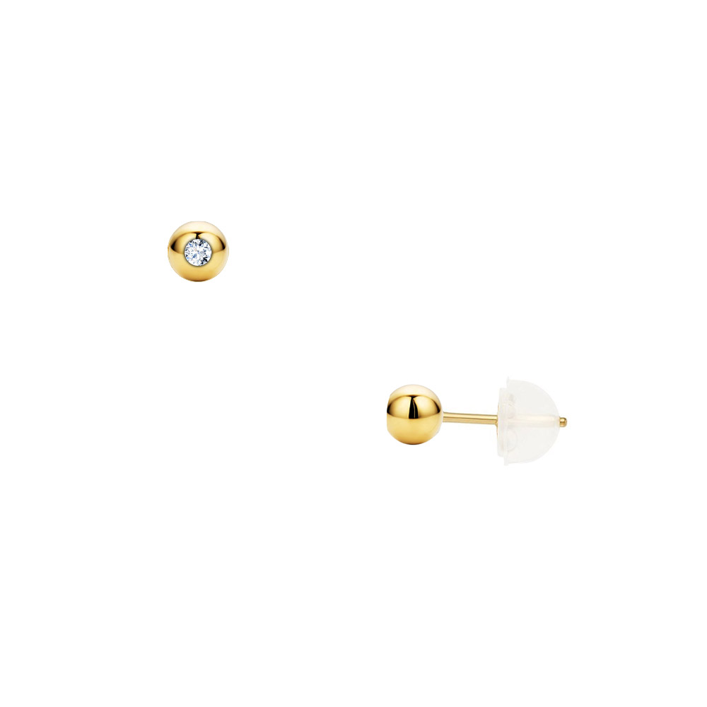 Διαθέτει 2 διαμάντια 0,04 καρατίων, καθαρότητας VS1 και κοψίματος Μπριγιάν τοποθετημένα σε χρυσή μπίλια διαμέτρου 4 χιλιοστών.