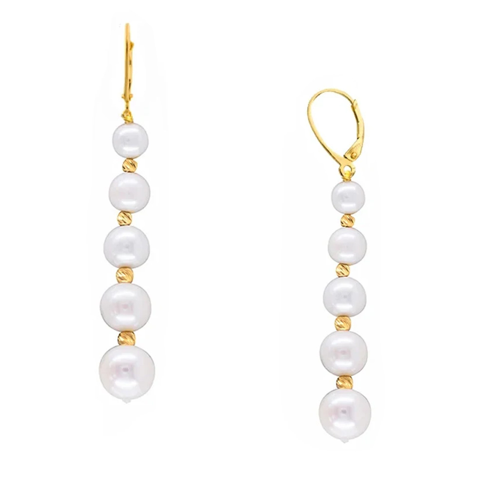 Σκουλαρίκια με Κ14 χρυσά στοιχεία και λευκά μαργαριτάρια - M125416