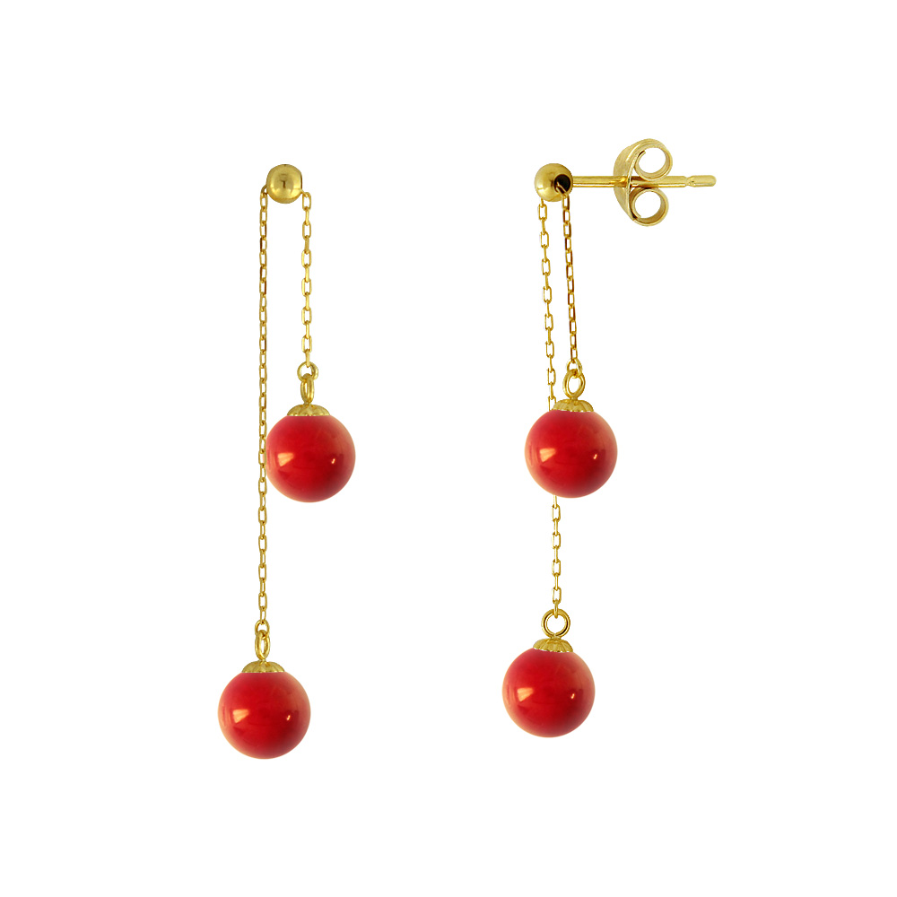 Σκουλαρίκια σε Κ18 χρυσή βάση και κοράλλι - M123227