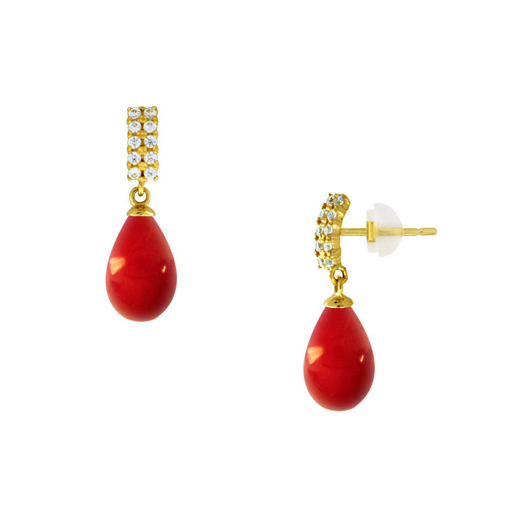 Σκουλαρίκια σε Κ14 χρυσή βάση και κοράλλι - M123674C