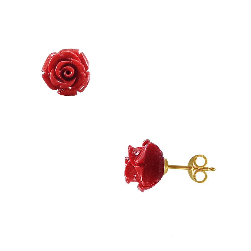 • Ένα υπέροχο ζευγάρι καρφωτά σκουλαρίκια με κοράλλια διάστασης 12 χιλιοστών σε σχήμα λουλούδι.