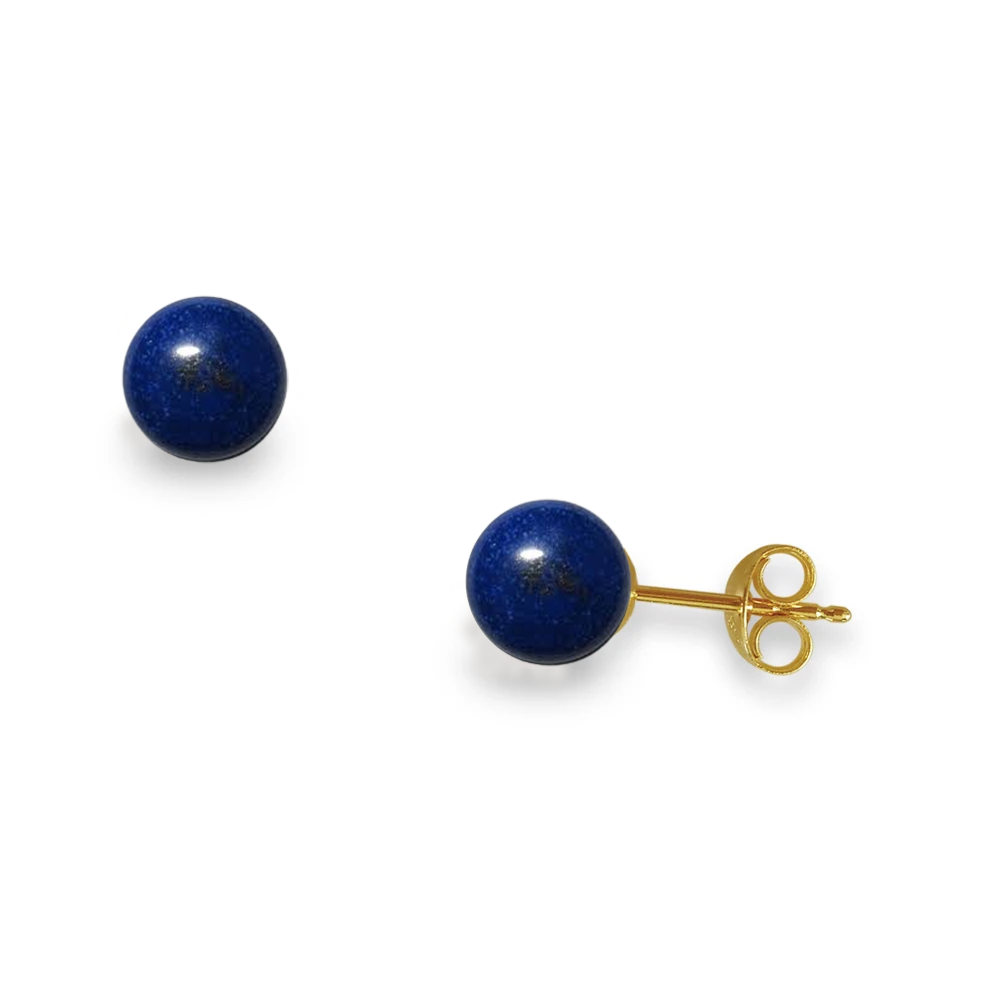 • Ένα υπέροχο ζευγάρι σκουλαρίκια με στρογγυλούς ημιπολύτιμους λίθους λάπις λάζουλι διαμέτρου χιλιοστών.